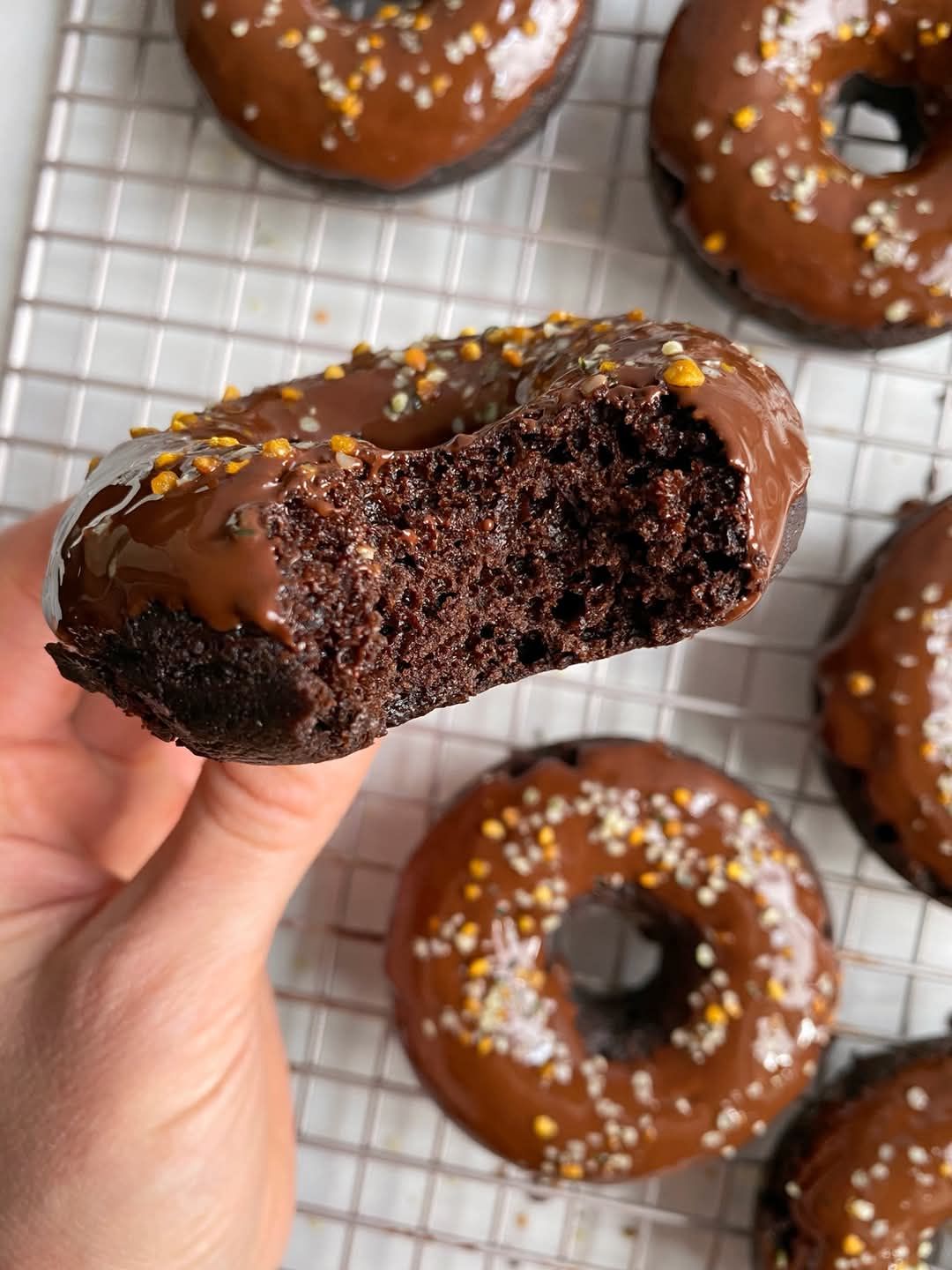 1. Pekač za krofe dobro premažemo s kokosovim ali olivnim oljem. Vsako luknjico za krof posujemo z malo grenkega kakava v prahu. Če uporabimo navaden pekač, ga obližimo s papirjem za peko (pred tem ga lahko premažemo z malo olja, da ga lažje razporedimo ali papir za peko rahlo zmočimo pod vodo).
